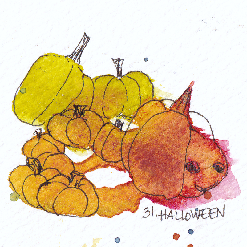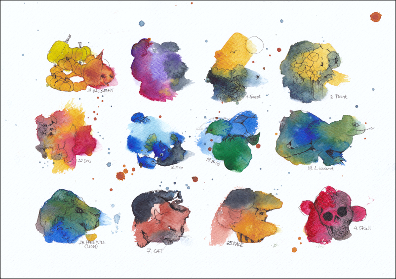 | I love finding figures in watercolour blobs, so the Blobtober challenge felt just right. | Type of paint | Watercolour & Ink |