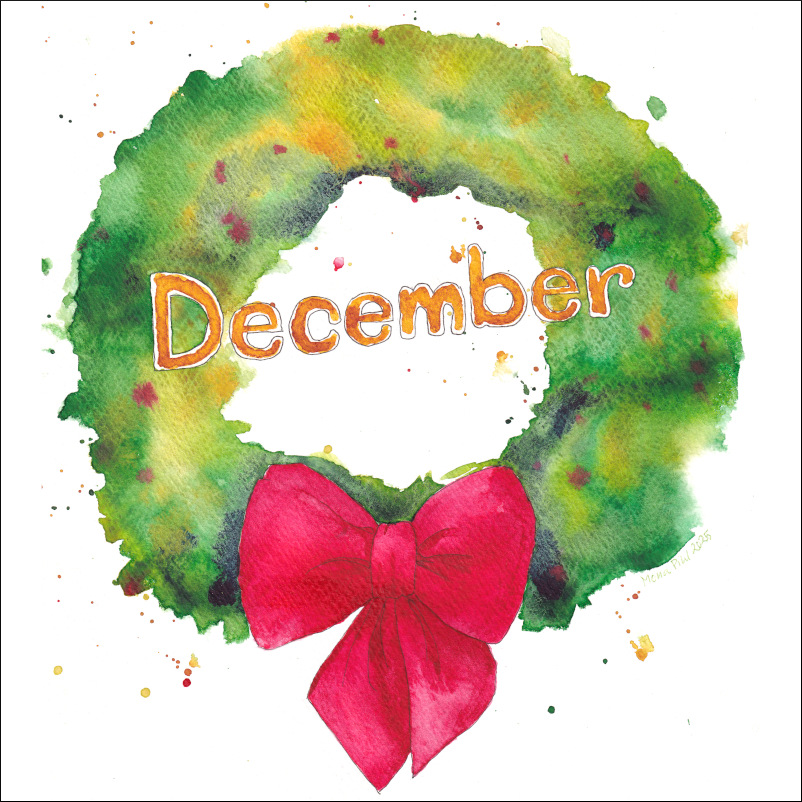 | 1. Greenery - this is a A4 watercolour to start the month; wreath for Doodlewash, greenery for StillArtmas and tied-in-a-bow for 12DaysOfCreativeCheer. |