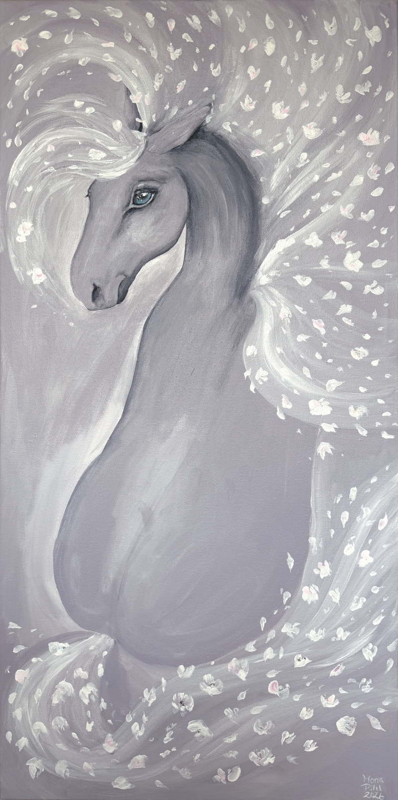 | 18. Hay manetenance - this is a painting I started last spring but finished now. It is the spring horse and she is very high mane-tenance. Acrylic; 35x70 cm |