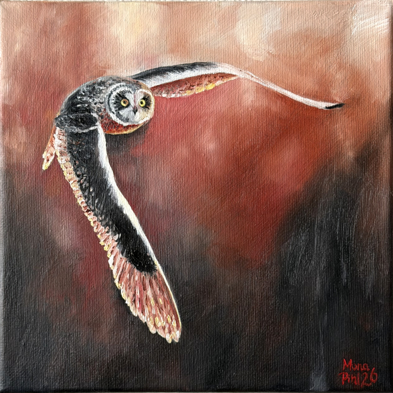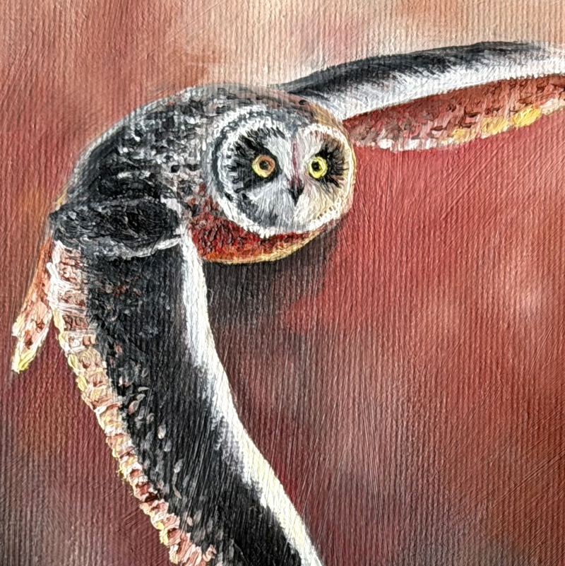 | 15. Short eared owl - continuing to pratice with oils (Artisan W&N) on a 20x20 canvas, both for Birbfest and The TuesdayCollective. Reference found here. |