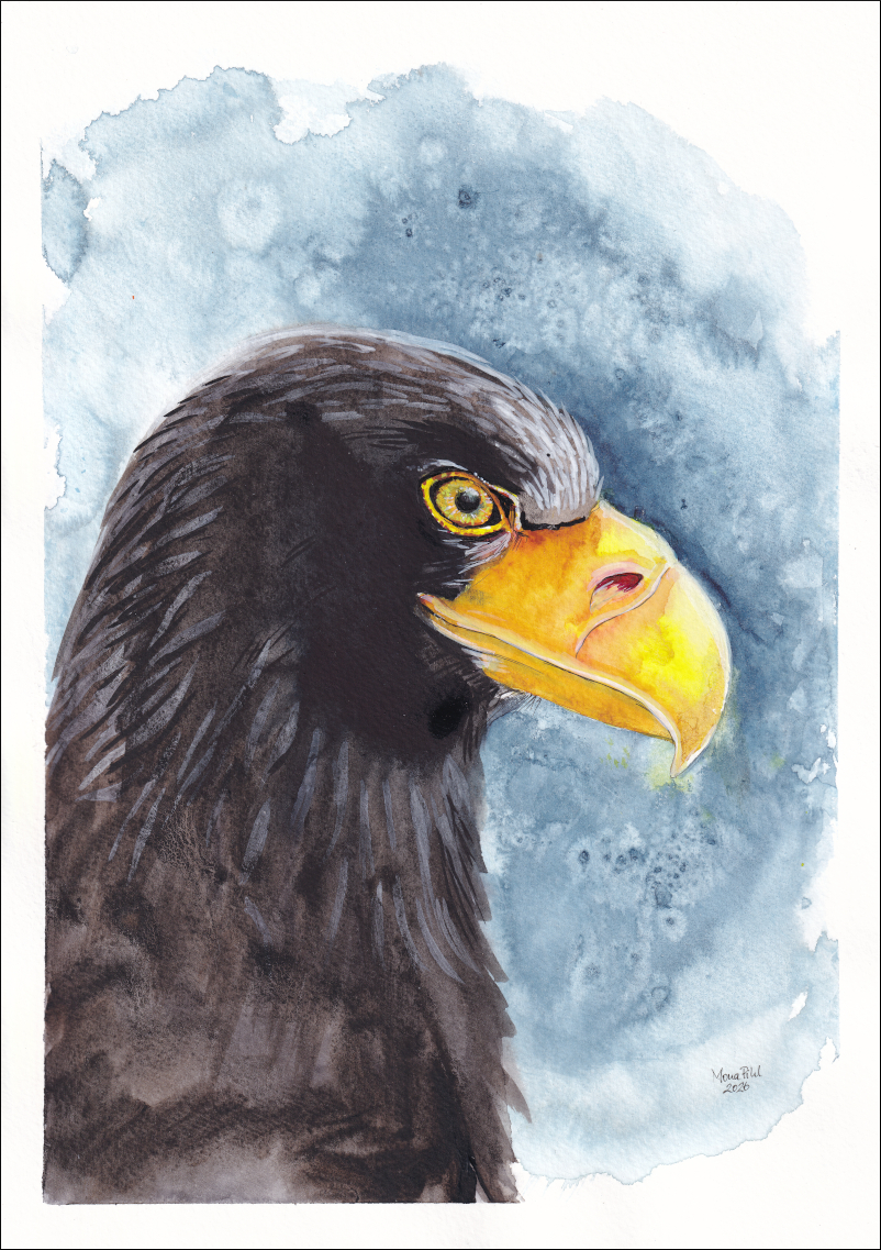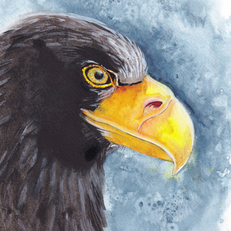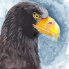 | 7. Steller's sea eagle - is todays bird in Birbfest. This is another watercolour on 19x19 cm hot pressed paper. With this I used salt in the background and some Arrtx acrylic markers in black and white. Loosly based on the reference I found here |
