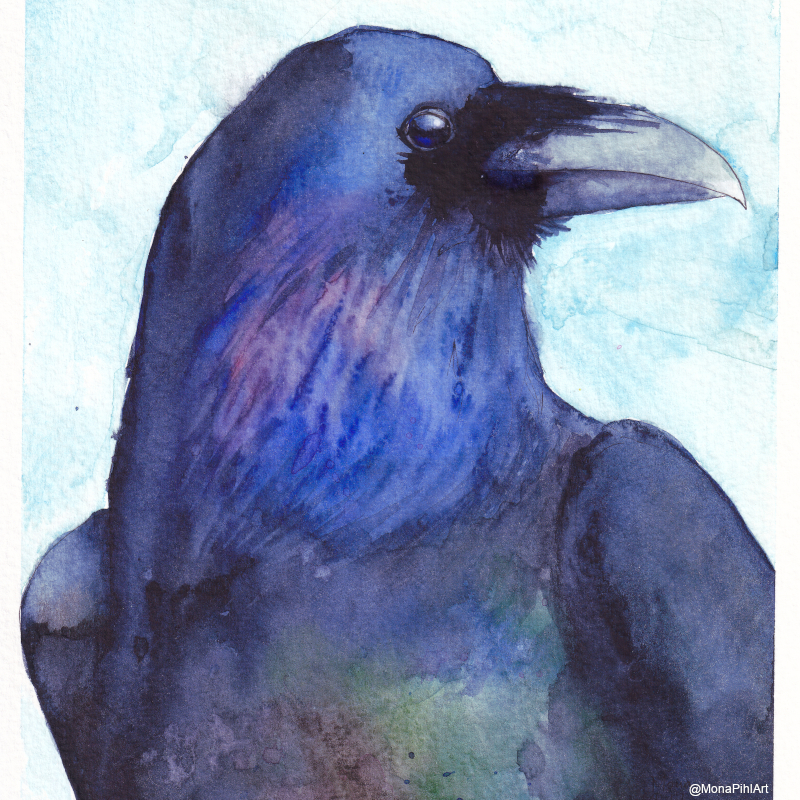 21. Raven - these are beautiful and clever birds. This is a A5 ink and watercolour painting. Reposted here. |