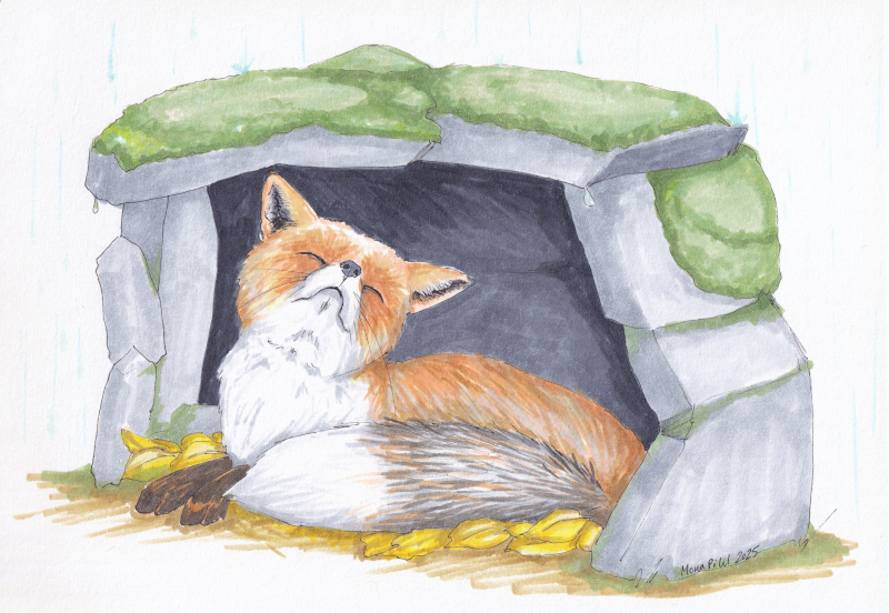 24. Rainy days - are very cosy when you are warm and snug at home. This is a A5 ink and copic marker drawing. |