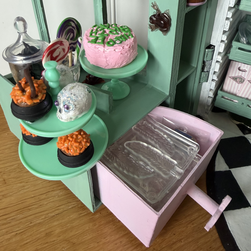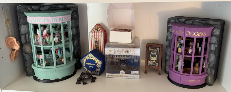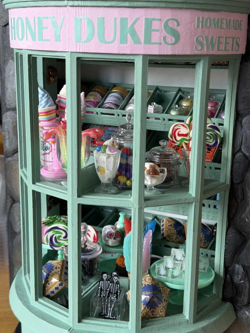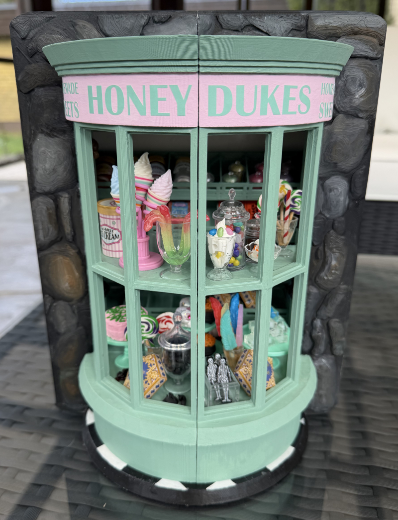 | After finishing Slugs & Jiggers, I also wanted to do Honeydukes for my Miniverse and home made miniatures. We printed this store bigger, and it really holds a lot of miniatures and can store all of the molds. The store sign is made using my vinyl cutter. | Material | Filament print |